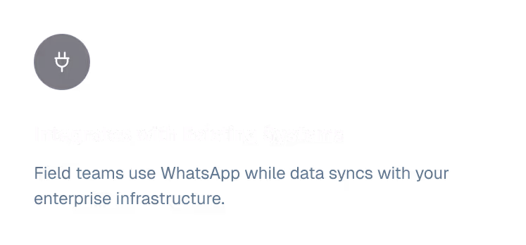 NuStream works through the apps your field teams already use — WhatsApp and